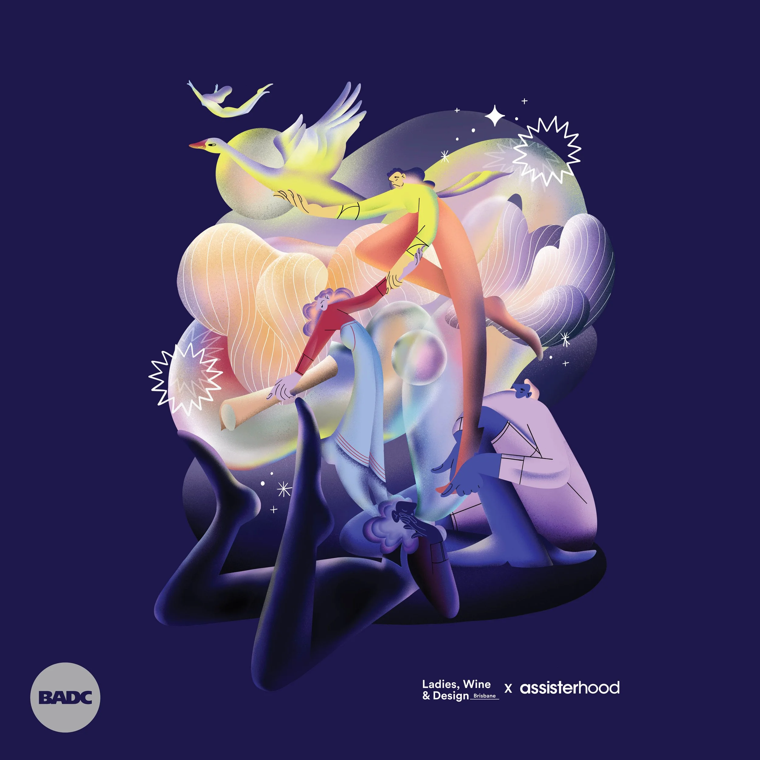 Assisterhood in collaboration with Ladies Wine Design commissioned two bespoke Illustrations in support of diversity to launch at the The Design Conference 2023 (TDC23), with limited edition merchandise.